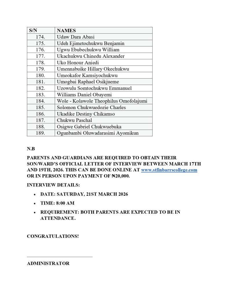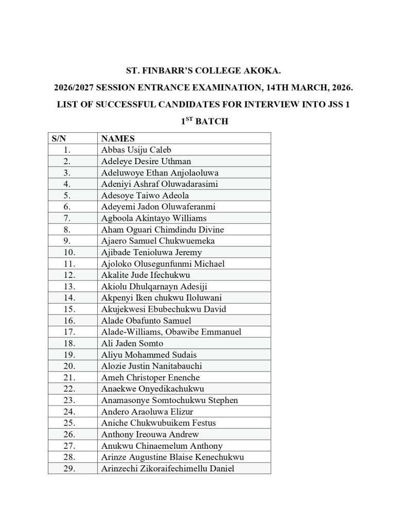 2026/2027 ACADEMIC SEESION ENTRANCE EXAMINATION RESULTS